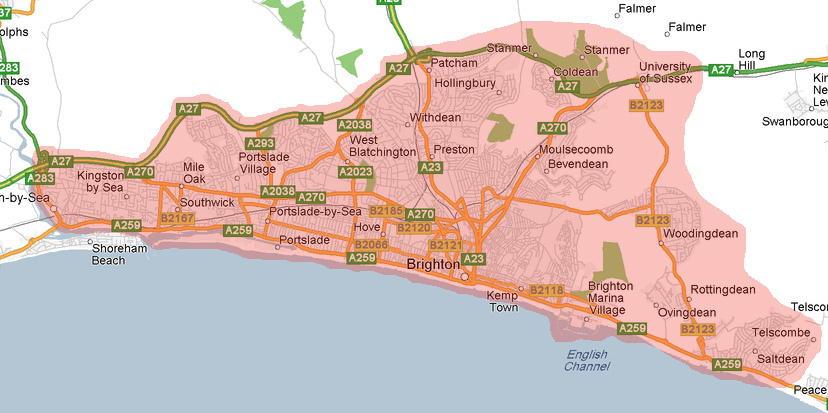 Collections and deliveries are available within the shaded area of the map below.